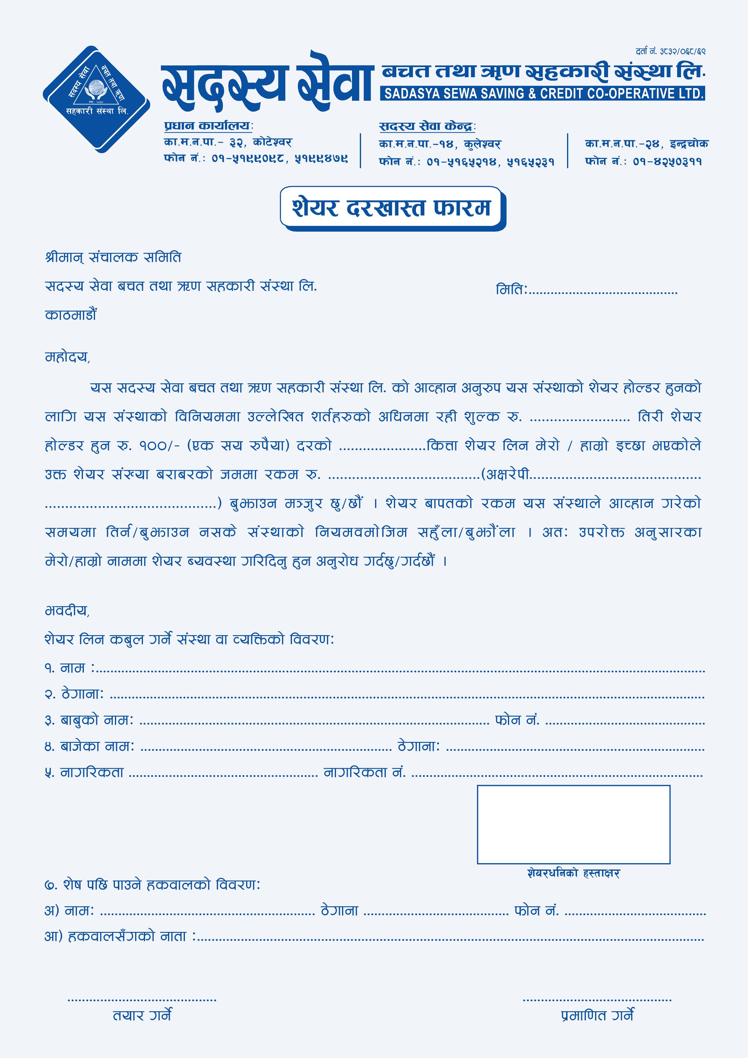 First and foremost, we would like to express our gratitude for taking the time to learn more about Sadasya Sewa Saving & Credit Co-operative Ltd. We appreciate the faith you have placed in us.